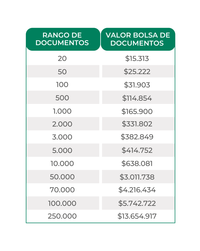 Este plan fue creado para que se adapte a tus necesidades, compra el número de documentos que deseas y después de que realices la compra tendrás un año para que los consumas